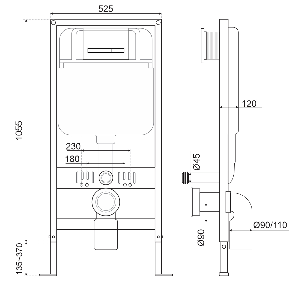 - Tâm xả: 230mm (thoát ngang Strap)