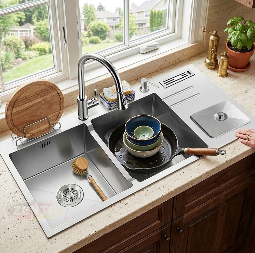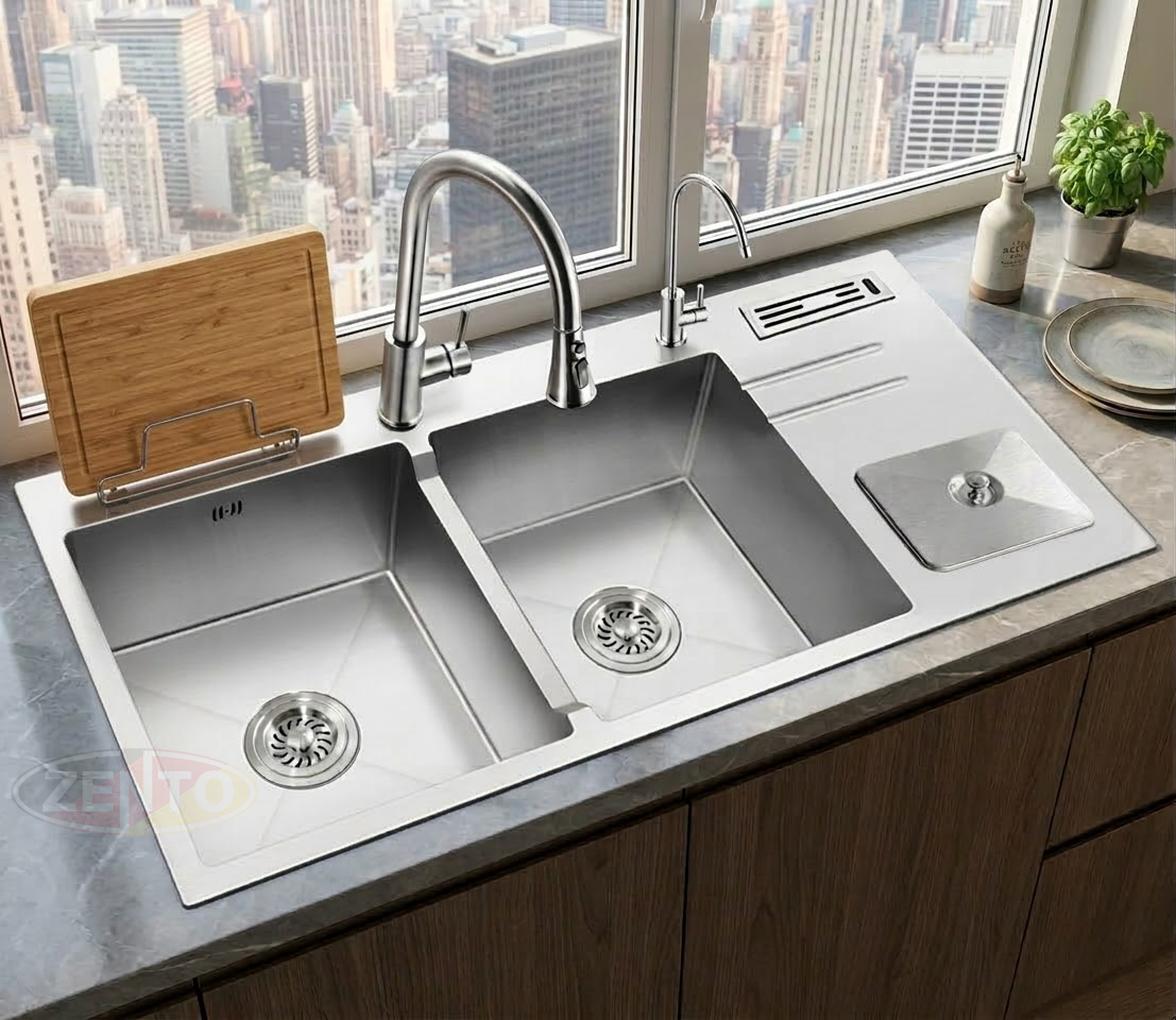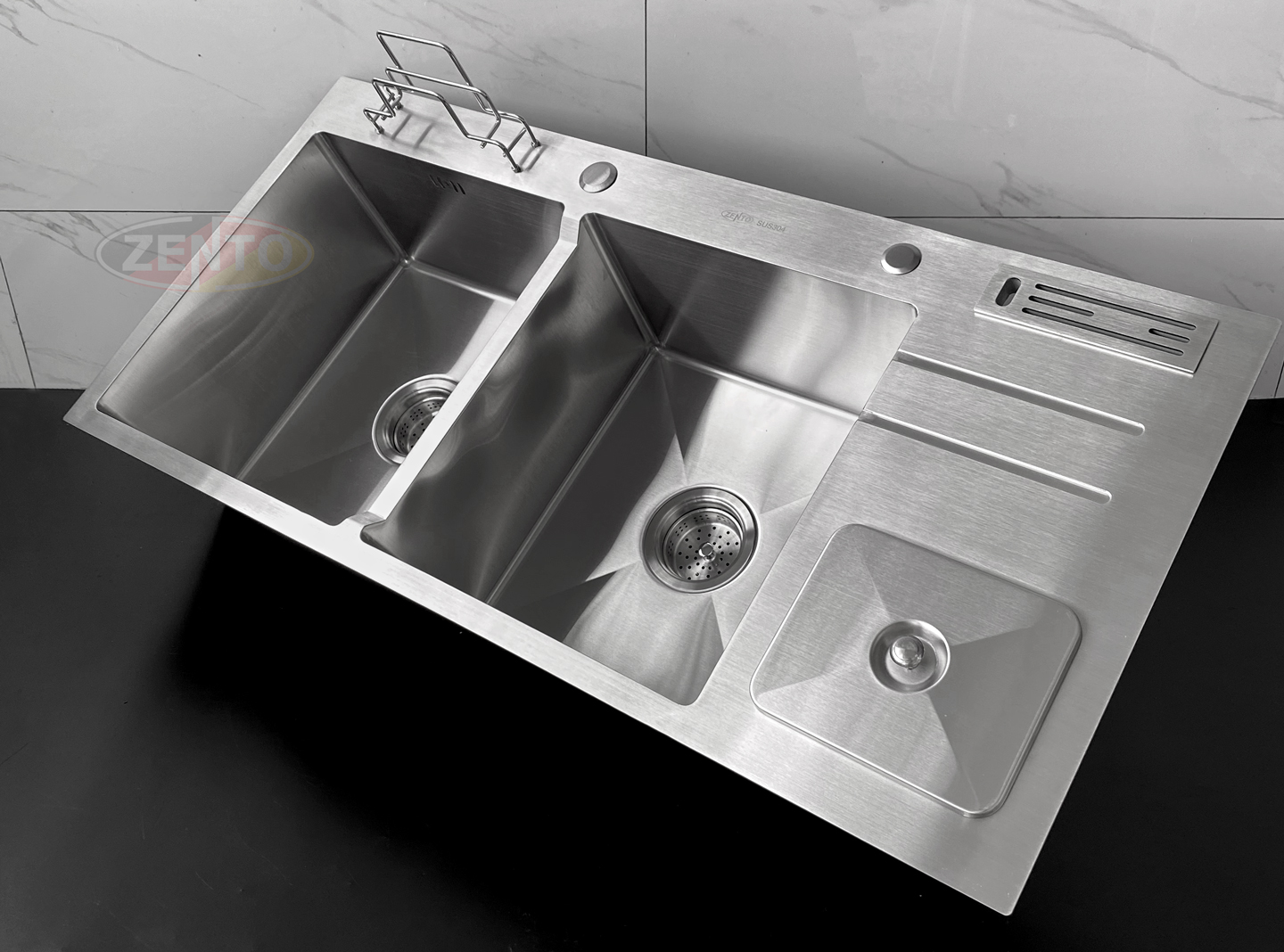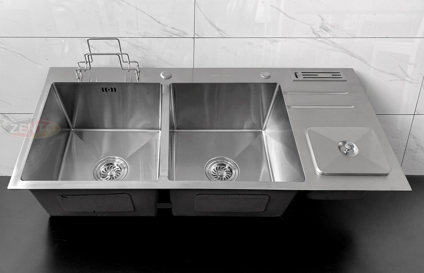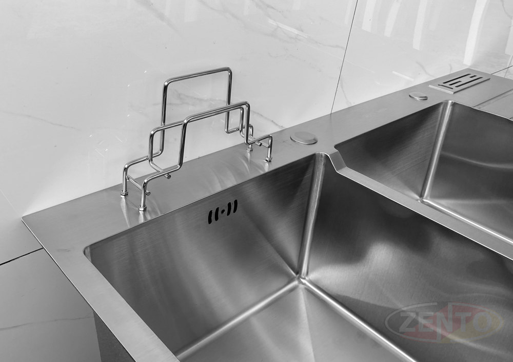 Ngoài ra chậu còn được trang bị thêm giá để thớt, khe cắm dao với hộp đựng và ống thoát nước bên dưới tạo nên một hệ thống chậu rửa với nhiều chức năng tiện ích góp phần tạo nên một căn bếp hoàn hảo cho gia đình bạn.