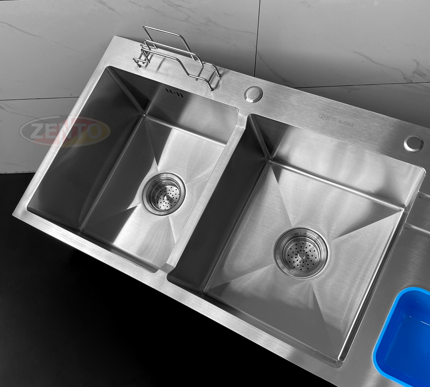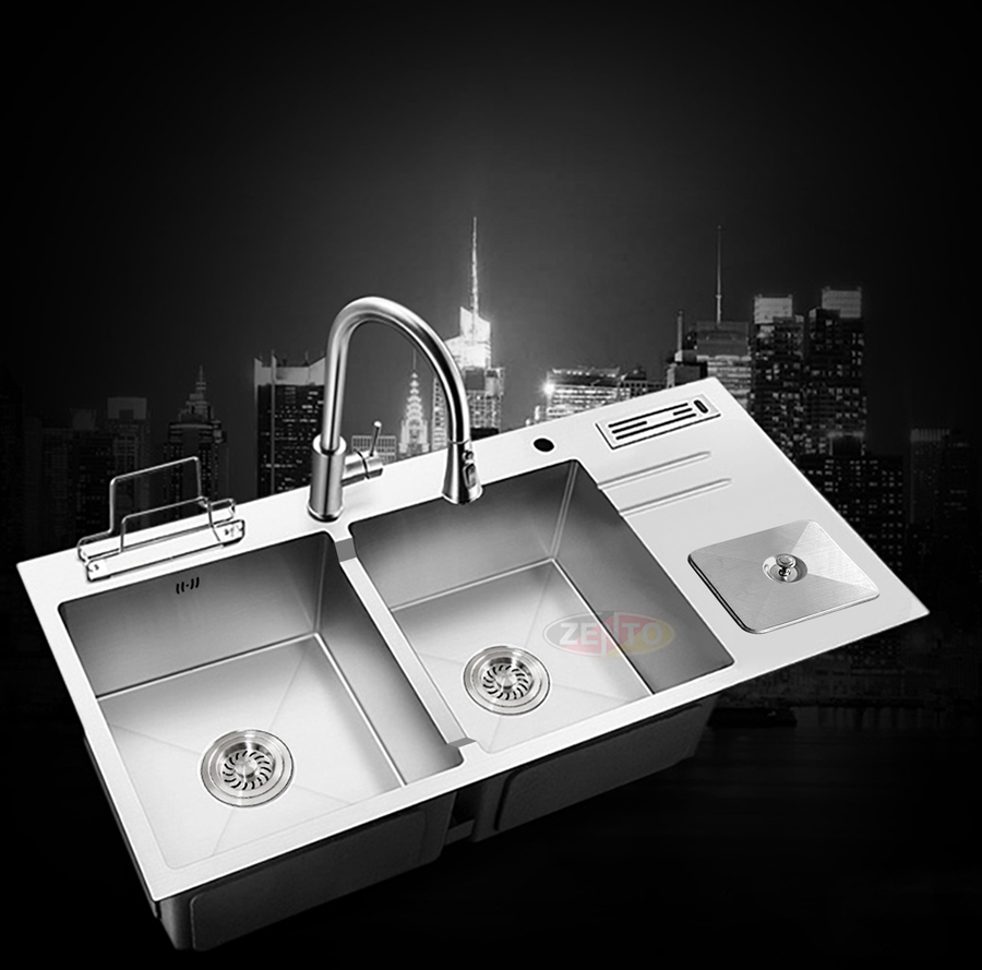Chậu rửa bát inox 2 hố cân có hộp rác HD10048-304HPT có bề mặt dày 3.2mm chịu lực, chịu nhiệt tốt, độ bền cao không bị hoen gỉ sau thời gian dài sử dụng lại dễ dàng vệ sinh & luôn duy trì độ sáng bóng như mới.