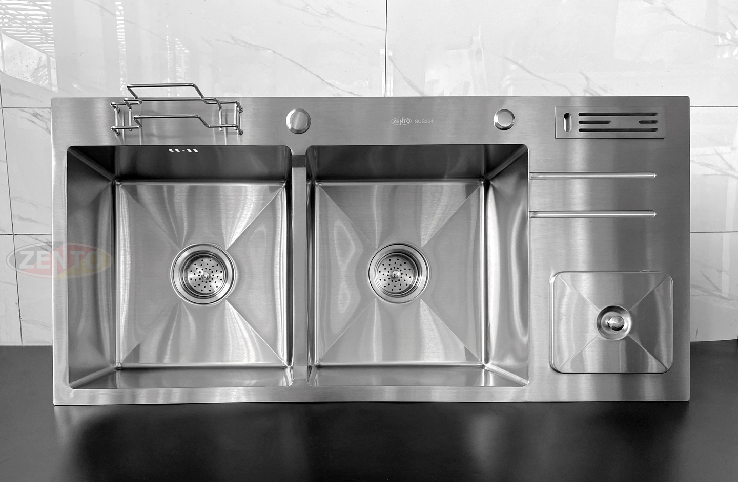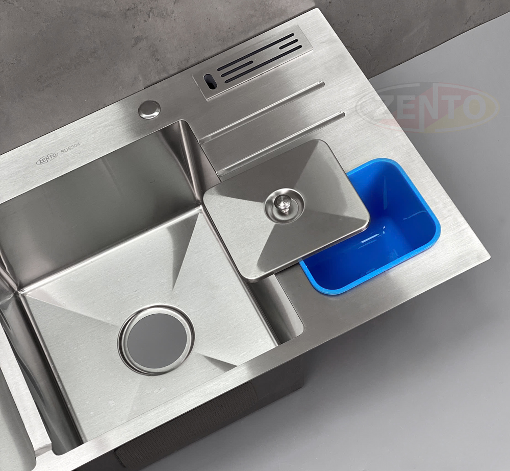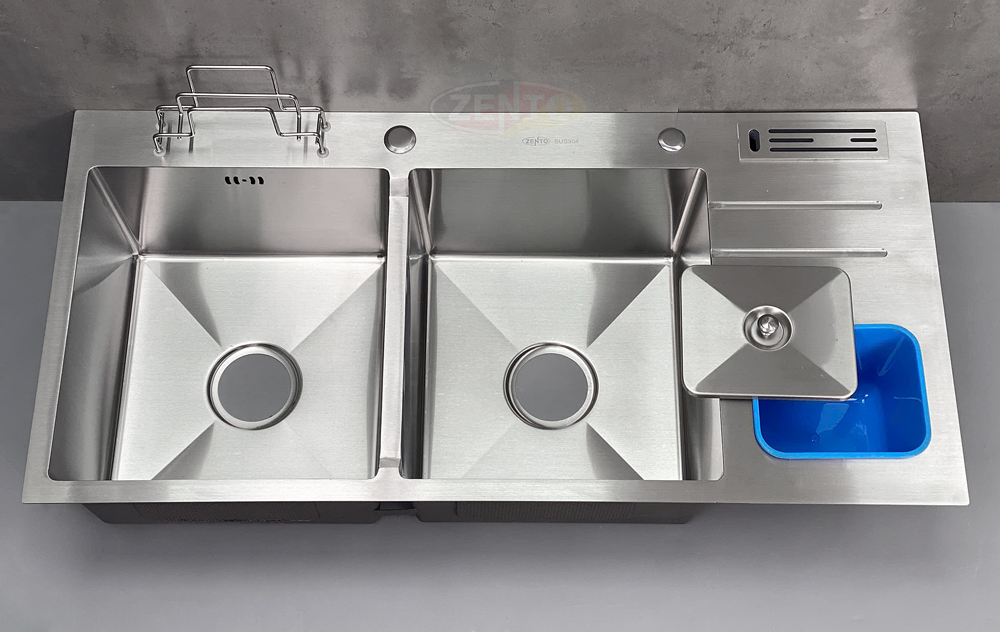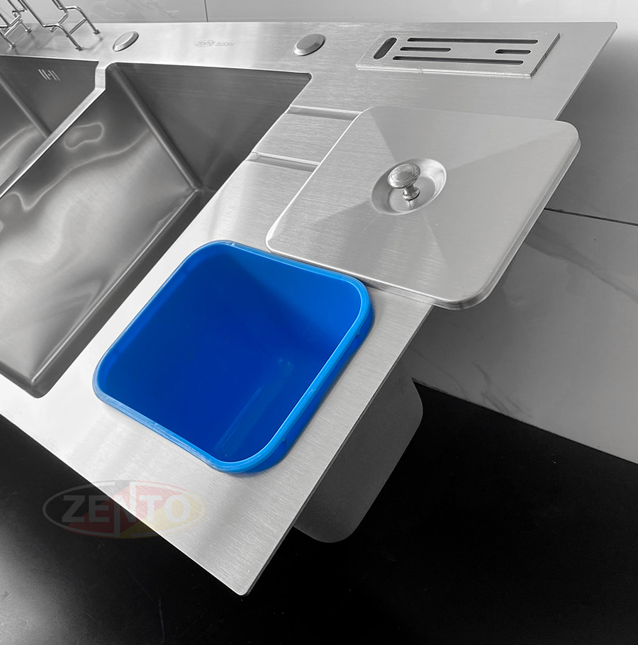 Chậu rửa bát inox 2 hố cân có hộp rác HD10048-304HPT (full)