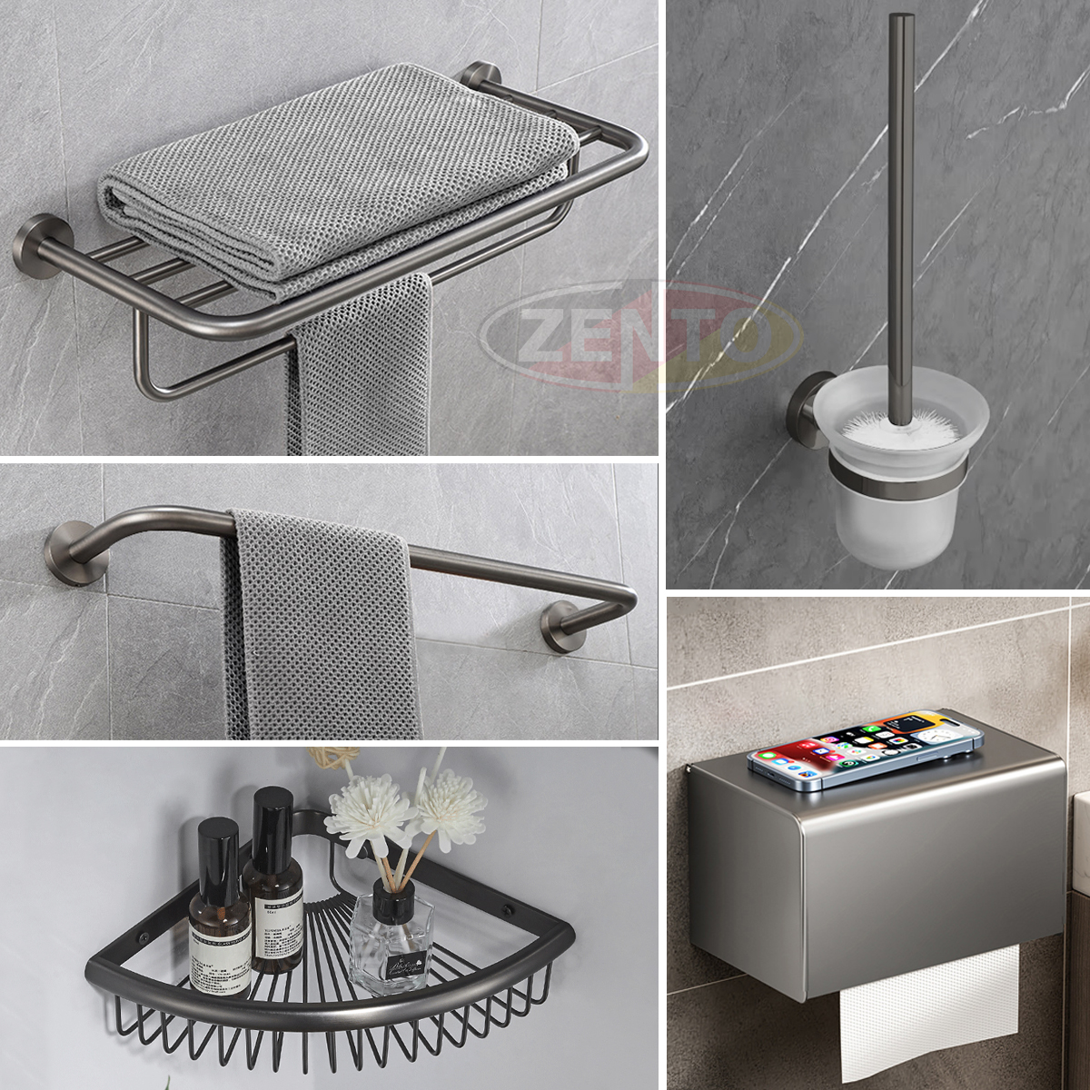 Tags : Bộ 5 phụ kiện nhà tắm Zento AL12-Gr, Giá để đồ kết hợp treo khăn, Giá treo khăn đơn, Giá góc, Lô giấy vệ sinh, Bộ chổi cọ và kệ đỡ.,