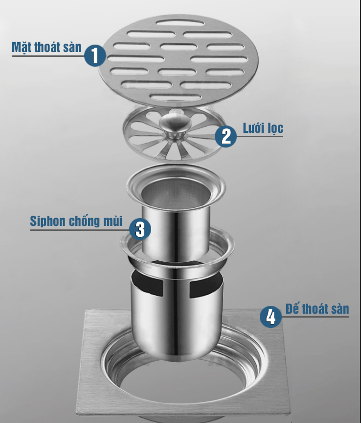 Tags : Phễu thoát sàn chống mùi inox TS125-201-2U (118x118mm),