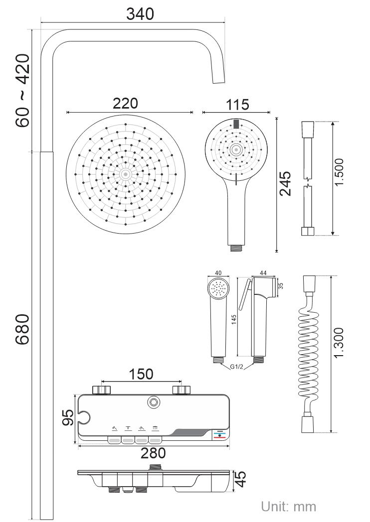 Tags : Bộ sen cây 4in1 hiển thị nhiệt độ nước ZT8145, digital display shower, Sen cây, Sen hiển thị, Bộ sen cây,