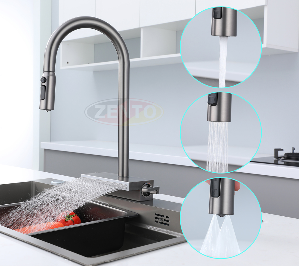 Tags : Vòi rửa chén bát 4in1 Waterfall faucet kitchen SUS5540-Gr (dây rút), vòi rửa chén bát, vòi rửa bát, vòi rửa chén,